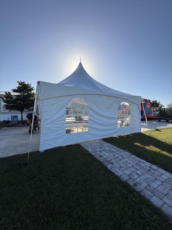 20x20 Premium High Peak TentTable 8':20x20 Premium High Peak Tent1Dropdown02246839_21972790000 This 20x20 Premium High Peak Tent is a spacious, elegant shelter that's perfect for outdoor events such as weddings, birthday parties, and family gatherings. Its high peak design not only adds a touch of sophistication but also allows for better air circulation, making it comfortable for guests. It's large enough to accommodate tables, chairs, and a small dance floor, transforming any outdoor space into a cozy, inviting venue. Whether it's to keep the sun off during a bright day or to have a little haven from light rain, this tent ensures your event goes smoothly, making it an essential item for anyone planning an outdoor celebration.